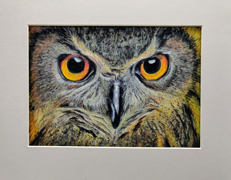 Pastels ~ Birds Blue Tit12 x 9.5Eye of the eagleOwl HeadOwl in mid airsong thrush 12 x 9.5Wren 12 x 9.5Ringed Owl