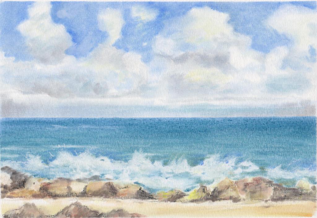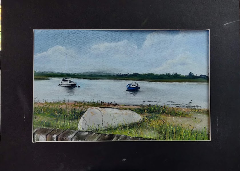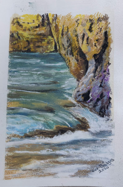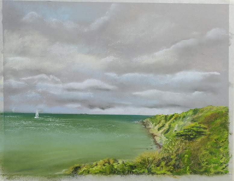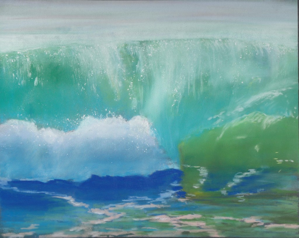 Pastels ~ Sea views White boat CalshotA3Rocks Portugalmixed media 10 x 7CornwallA3Waves at Lepe12 x 8.5Portugal Waves12 x 8.5Portugal crashing waves12 x 8.5Bay in DevonA3Crashing waves9.5 x 12Windy day Dublin bay10 x 14